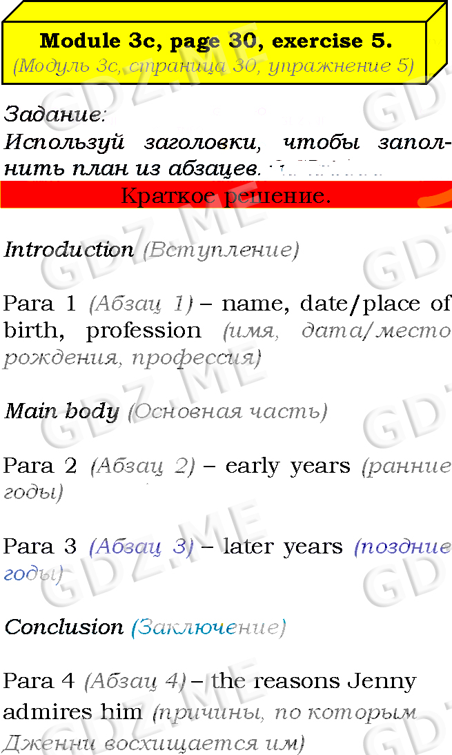 Подробный вариант решения из решебника (ГДЗ): Страница номер 30-3c-5 (Module 2. Tale time. Module 3. Profiles. Страница 30) по предмету Английский язык, за 7 класс, авторы учебника Ю.Е. Ваулина, Д. Дули, О.Е. Подолянко, В. Эванс.