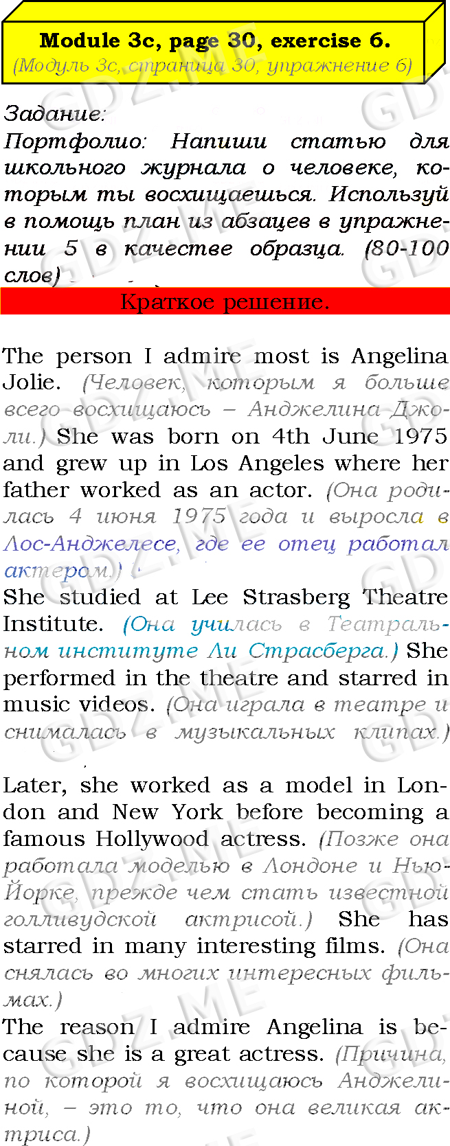 Подробный вариант решения из решебника (ГДЗ): Страница номер 30-3c-6 (Module 2. Tale time. Module 3. Profiles. Страница 30) по предмету Английский язык, за 7 класс, авторы учебника Ю.Е. Ваулина, Д. Дули, О.Е. Подолянко, В. Эванс.