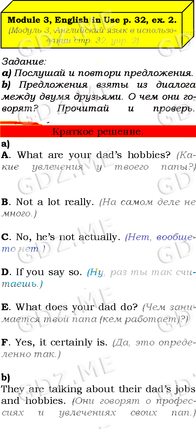 Подробный вариант решения из решебника (ГДЗ): Страница номер 32-3-2 (Module 2. Tale time. Module 3. Profiles. Страница 32) по предмету Английский язык, за 7 класс, авторы учебника Ю.Е. Ваулина, Д. Дули, О.Е. Подолянко, В. Эванс.