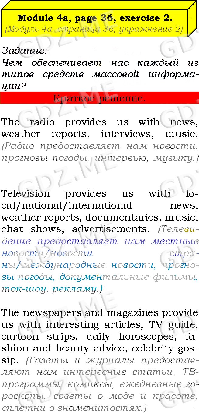 Подробный вариант решения из решебника (ГДЗ): Страница номер 36-4a-2 (Module 3. Profiles. Module 4. In the news. Страница 36) по предмету Английский язык, за 7 класс, авторы учебника Ю.Е. Ваулина, Д. Дули, О.Е. Подолянко, В. Эванс.