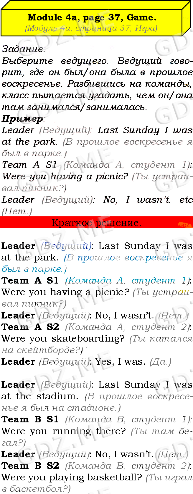 Подробный вариант решения из решебника (ГДЗ): Страница номер Game (Module 3. Profiles. Module 4. In the news. Страница 37) по предмету Английский язык, за 7 класс, авторы учебника Ю.Е. Ваулина, Д. Дули, О.Е. Подолянко, В. Эванс.