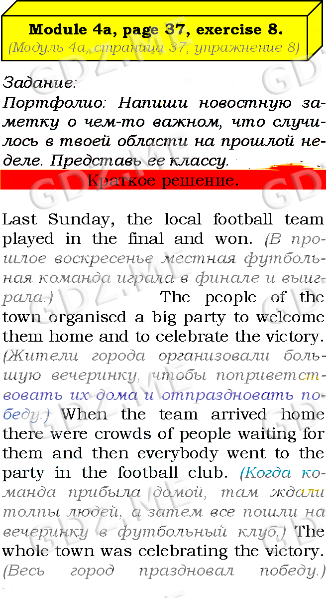 Подробный вариант решения из решебника (ГДЗ): Страница номер 37-4a-8 (Module 3. Profiles. Module 4. In the news. Страница 37) по предмету Английский язык, за 7 класс, авторы учебника Ю.Е. Ваулина, Д. Дули, О.Е. Подолянко, В. Эванс.
