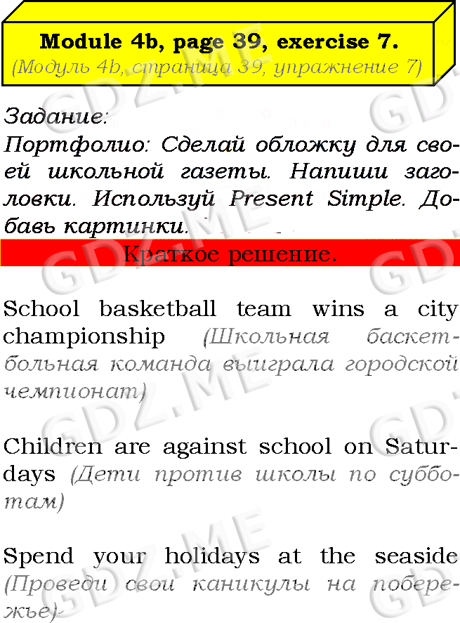 Подробный вариант решения из решебника (ГДЗ): Страница номер 39-4b-7 (Module 3. Profiles. Module 4. In the news. Страница 39) по предмету Английский язык, за 7 класс, авторы учебника Ю.Е. Ваулина, Д. Дули, О.Е. Подолянко, В. Эванс.