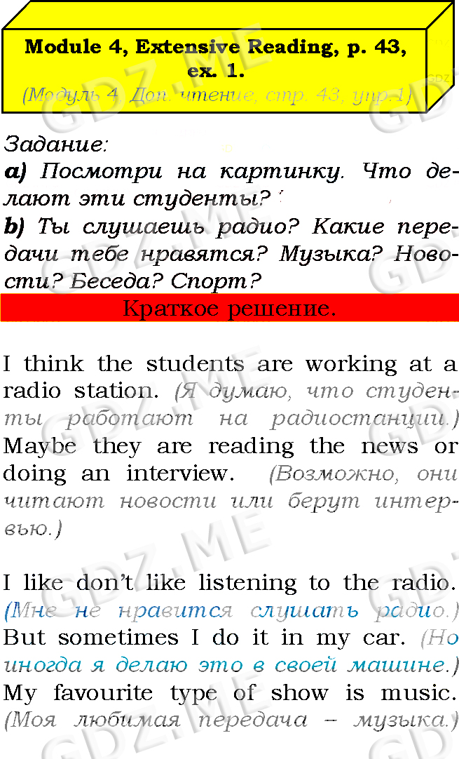 Подробный вариант решения из решебника (ГДЗ): Страница номер 43-4-1 (Module 3. Profiles. Module 4. In the news. Страница 43) по предмету Английский язык, за 7 класс, авторы учебника Ю.Е. Ваулина, Д. Дули, О.Е. Подолянко, В. Эванс.
