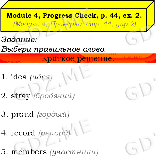 Подробный вариант решения из решебника (ГДЗ): Страница номер 44-4-2 (Module 3. Profiles. Module 4. In the news. Страница 44) по предмету Английский язык, за 7 класс, авторы учебника Ю.Е. Ваулина, Д. Дули, О.Е. Подолянко, В. Эванс.