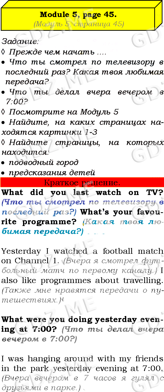 Подробный вариант решения из решебника (ГДЗ): Страница номер 45-5 (Module 4. In the news. Module 5. What the future holds. Страница 45) по предмету Английский язык, за 7 класс, авторы учебника Ю.Е. Ваулина, Д. Дули, О.Е. Подолянко, В. Эванс.