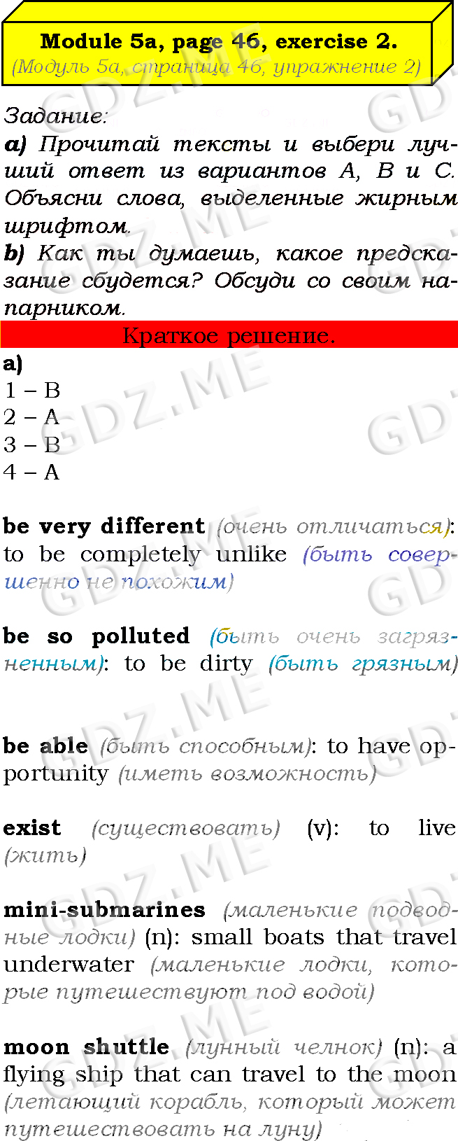 Подробный вариант решения из решебника (ГДЗ): Страница номер 46-5a-2 (Module 4. In the news. Module 5. What the future holds. Страница 46) по предмету Английский язык, за 7 класс, авторы учебника Ю.Е. Ваулина, Д. Дули, О.Е. Подолянко, В. Эванс.
