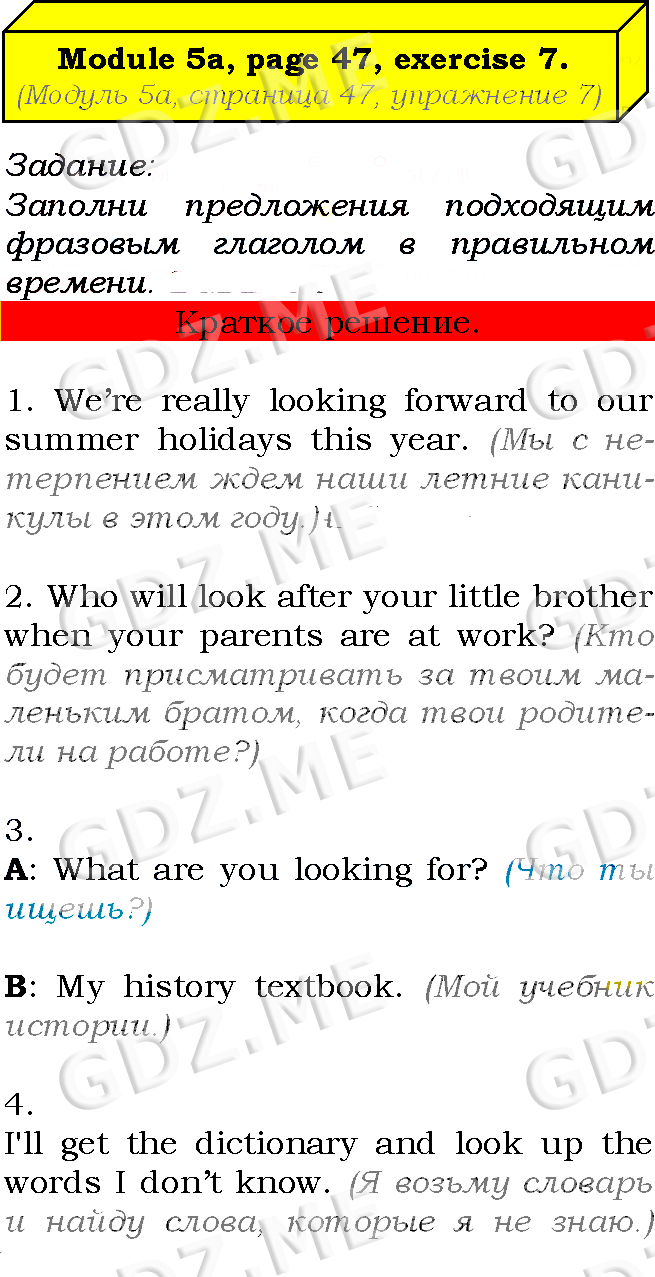 Подробный вариант решения из решебника (ГДЗ): Страница номер 47-5a-7 (Module 4. In the news. Module 5. What the future holds. Страница 47) по предмету Английский язык, за 7 класс, авторы учебника Ю.Е. Ваулина, Д. Дули, О.Е. Подолянко, В. Эванс.