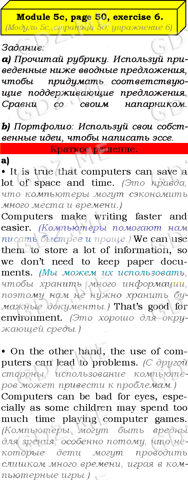 Подробный вариант решения из решебника (ГДЗ): Страница номер 50-5c-6 (Module 4. In the news. Module 5. What the future holds. Страница 50) по предмету Английский язык, за 7 класс, авторы учебника Ю.Е. Ваулина, Д. Дули, О.Е. Подолянко, В. Эванс.