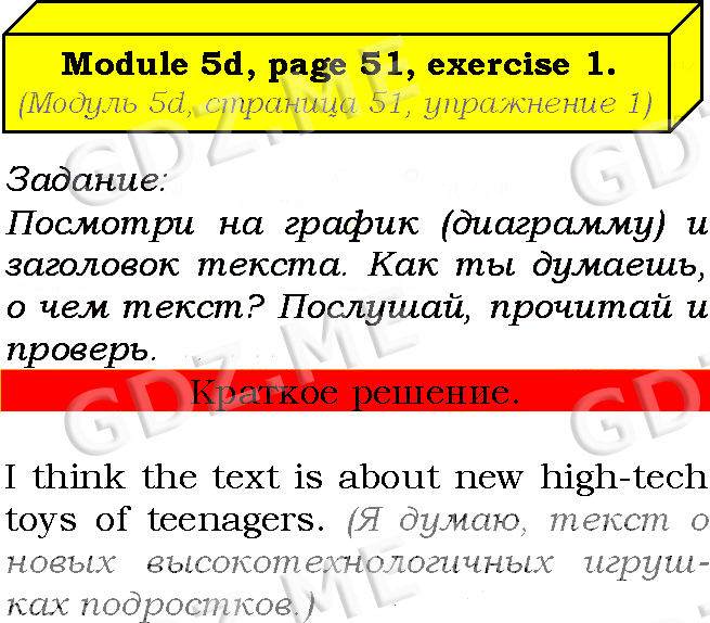 Подробный вариант решения из решебника (ГДЗ): Страница номер 51-5d-1 (Module 4. In the news. Module 5. What the future holds. Страница 51) по предмету Английский язык, за 7 класс, авторы учебника Ю.Е. Ваулина, Д. Дули, О.Е. Подолянко, В. Эванс.