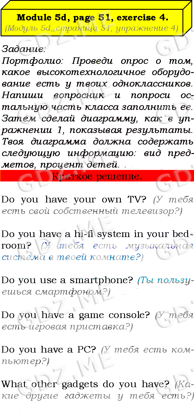 Подробный вариант решения из решебника (ГДЗ): Страница номер 51-5d-4 (Module 4. In the news. Module 5. What the future holds. Страница 51) по предмету Английский язык, за 7 класс, авторы учебника Ю.Е. Ваулина, Д. Дули, О.Е. Подолянко, В. Эванс.