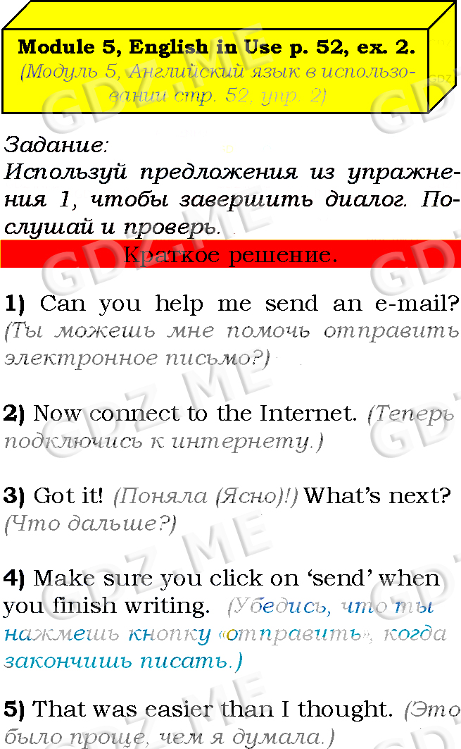 Подробный вариант решения из решебника (ГДЗ): Страница номер 52-5-2 (Module 4. In the news. Module 5. What the future holds. Страница 52) по предмету Английский язык, за 7 класс, авторы учебника Ю.Е. Ваулина, Д. Дули, О.Е. Подолянко, В. Эванс.