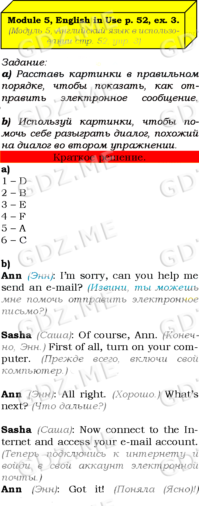 Подробный вариант решения из решебника (ГДЗ): Страница номер 52-5-3 (Module 4. In the news. Module 5. What the future holds. Страница 52) по предмету Английский язык, за 7 класс, авторы учебника Ю.Е. Ваулина, Д. Дули, О.Е. Подолянко, В. Эванс.