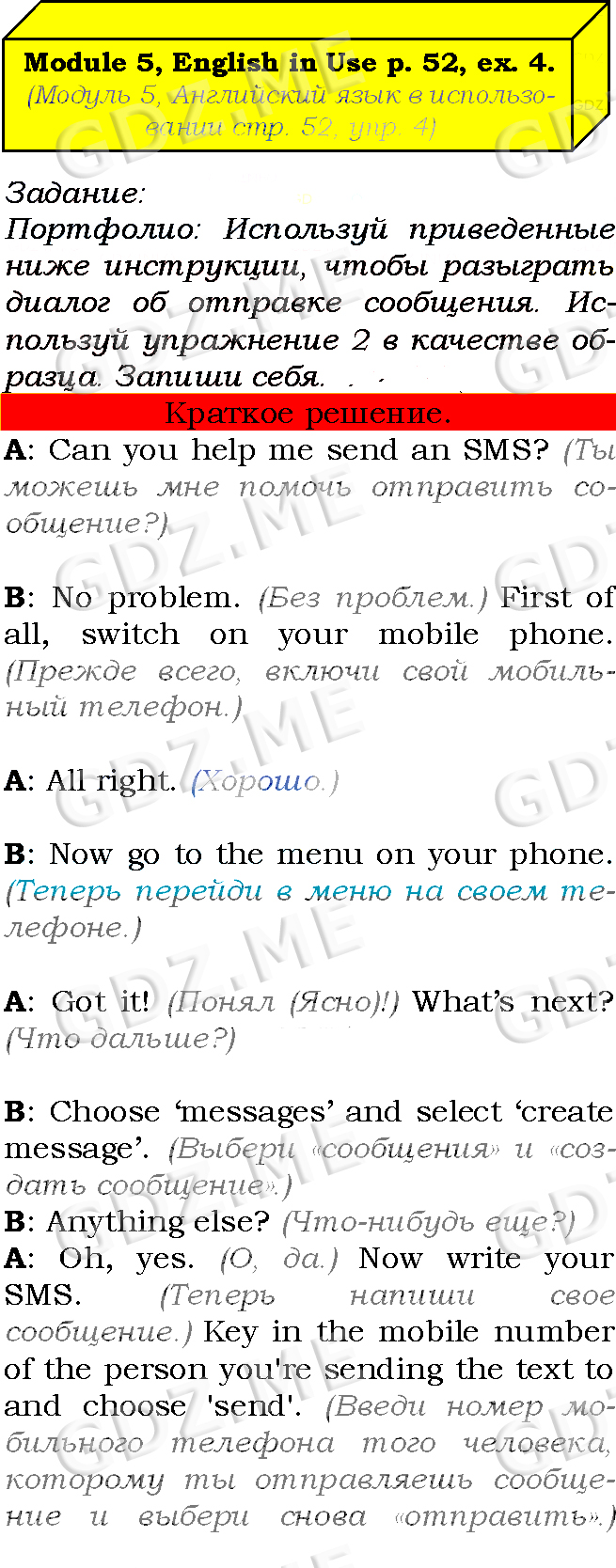 Подробный вариант решения из решебника (ГДЗ): Страница номер 52-5-4 (Module 4. In the news. Module 5. What the future holds. Страница 52) по предмету Английский язык, за 7 класс, авторы учебника Ю.Е. Ваулина, Д. Дули, О.Е. Подолянко, В. Эванс.