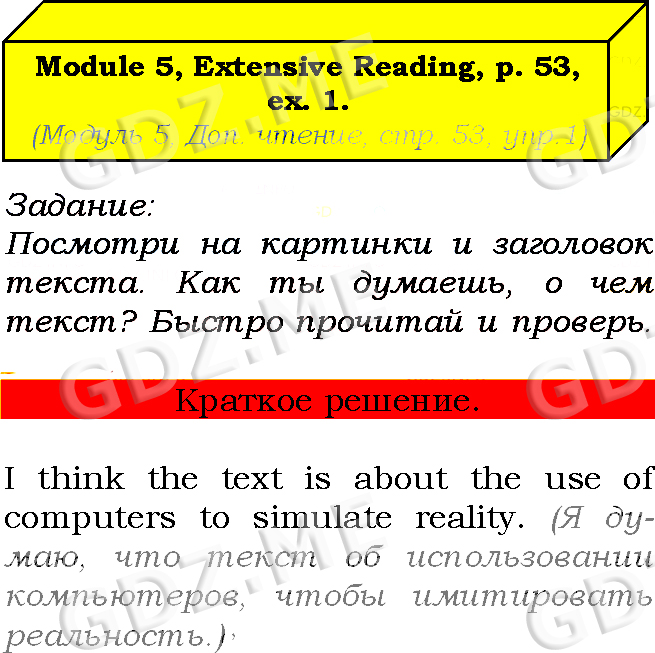 Подробный вариант решения из решебника (ГДЗ): Страница номер 53-5-1 (Module 4. In the news. Module 5. What the future holds. Страница 53) по предмету Английский язык, за 7 класс, авторы учебника Ю.Е. Ваулина, Д. Дули, О.Е. Подолянко, В. Эванс.