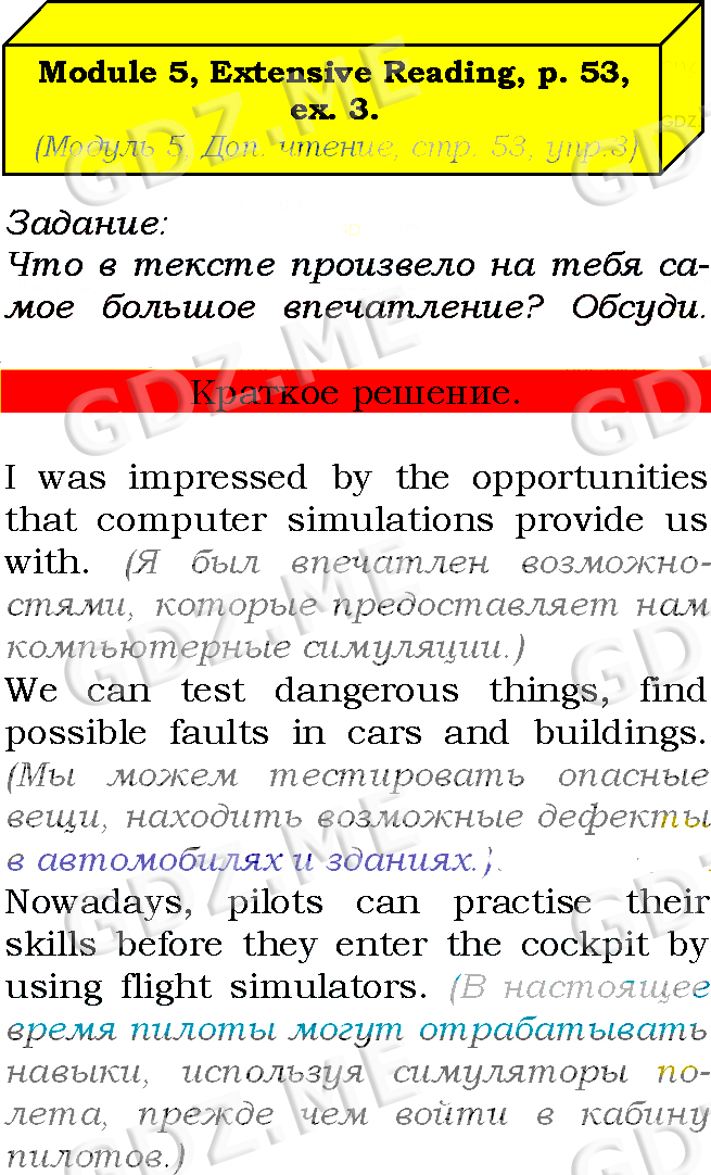 Подробный вариант решения из решебника (ГДЗ): Страница номер 53-5-3 (Module 4. In the news. Module 5. What the future holds. Страница 53) по предмету Английский язык, за 7 класс, авторы учебника Ю.Е. Ваулина, Д. Дули, О.Е. Подолянко, В. Эванс.