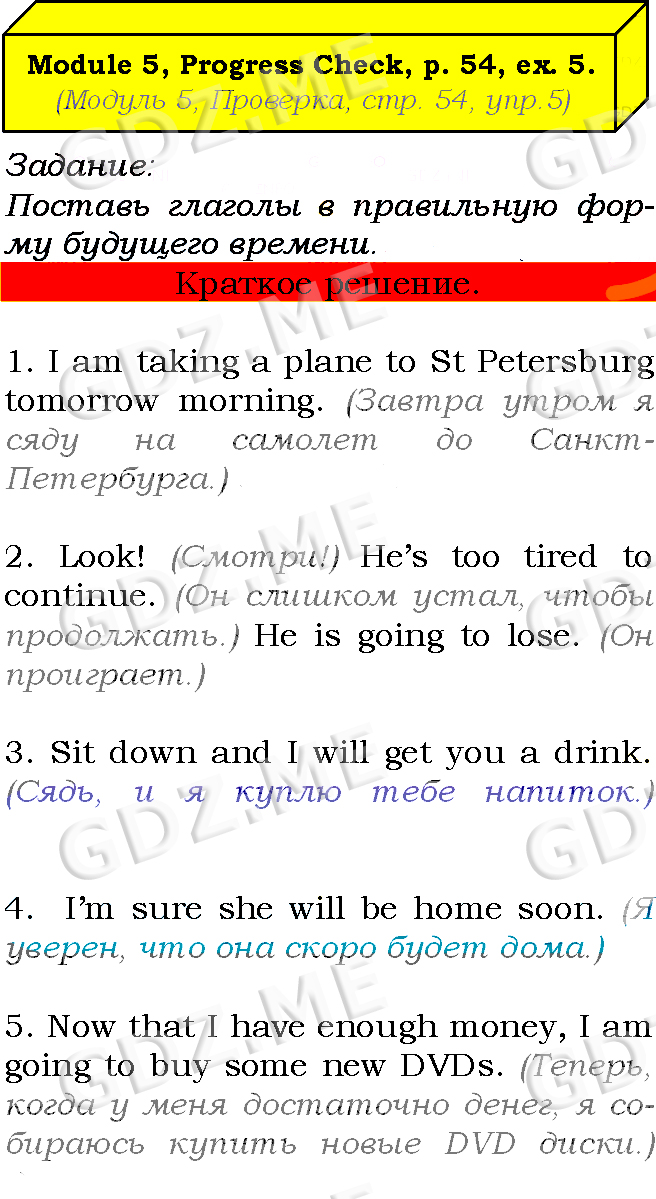 Подробный вариант решения из решебника (ГДЗ): Страница номер 54-5-5 (Module 4. In the news. Module 5. What the future holds. Страница 54) по предмету Английский язык, за 7 класс, авторы учебника Ю.Е. Ваулина, Д. Дули, О.Е. Подолянко, В. Эванс.