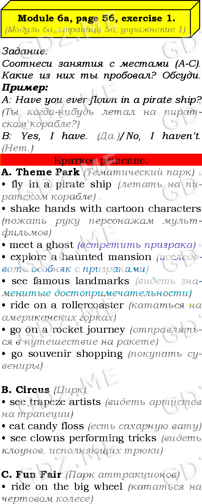 Подробный вариант решения из решебника (ГДЗ): Страница номер 56-6a-1 (Module 5. What the future holds. Module 6. Having fun. Страница 56) по предмету Английский язык, за 7 класс, авторы учебника Ю.Е. Ваулина, Д. Дули, О.Е. Подолянко, В. Эванс.