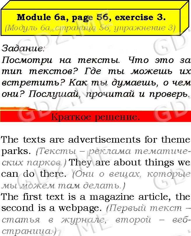 Подробный вариант решения из решебника (ГДЗ): Страница номер 56-6a-3 (Module 5. What the future holds. Module 6. Having fun. Страница 56) по предмету Английский язык, за 7 класс, авторы учебника Ю.Е. Ваулина, Д. Дули, О.Е. Подолянко, В. Эванс.