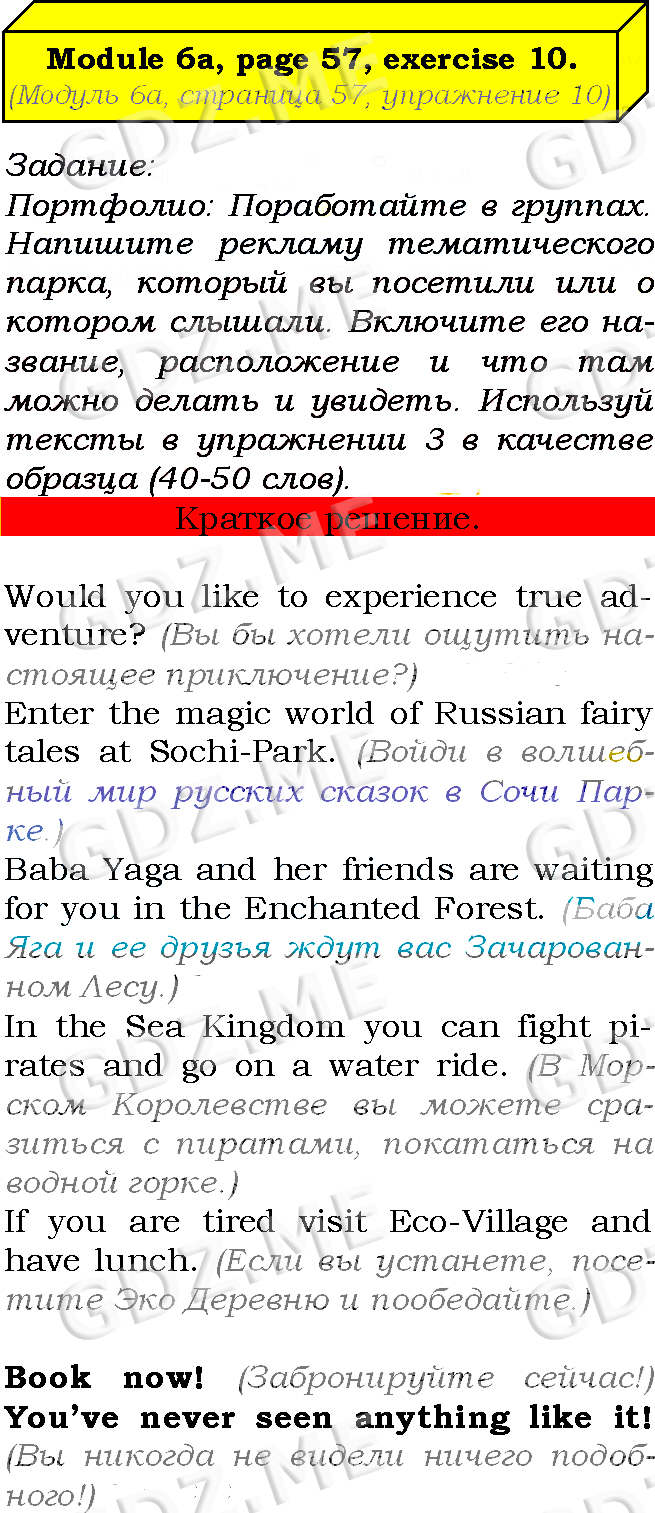 Подробный вариант решения из решебника (ГДЗ): Страница номер 57-6a-10 (Module 5. What the future holds. Module 6. Having fun. Страница 57) по предмету Английский язык, за 7 класс, авторы учебника Ю.Е. Ваулина, Д. Дули, О.Е. Подолянко, В. Эванс.