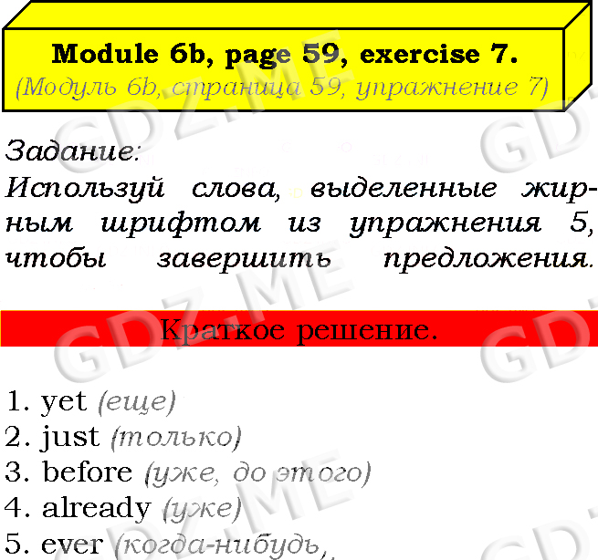 Подробный вариант решения из решебника (ГДЗ): Страница номер 59-6b-7 (Module 5. What the future holds. Module 6. Having fun. Страница 59) по предмету Английский язык, за 7 класс, авторы учебника Ю.Е. Ваулина, Д. Дули, О.Е. Подолянко, В. Эванс.