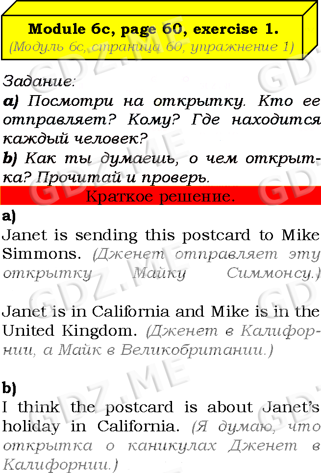 Подробный вариант решения из решебника (ГДЗ): Страница номер 60-6c-1 (Module 5. What the future holds. Module 6. Having fun. Страница 60) по предмету Английский язык, за 7 класс, авторы учебника Ю.Е. Ваулина, Д. Дули, О.Е. Подолянко, В. Эванс.
