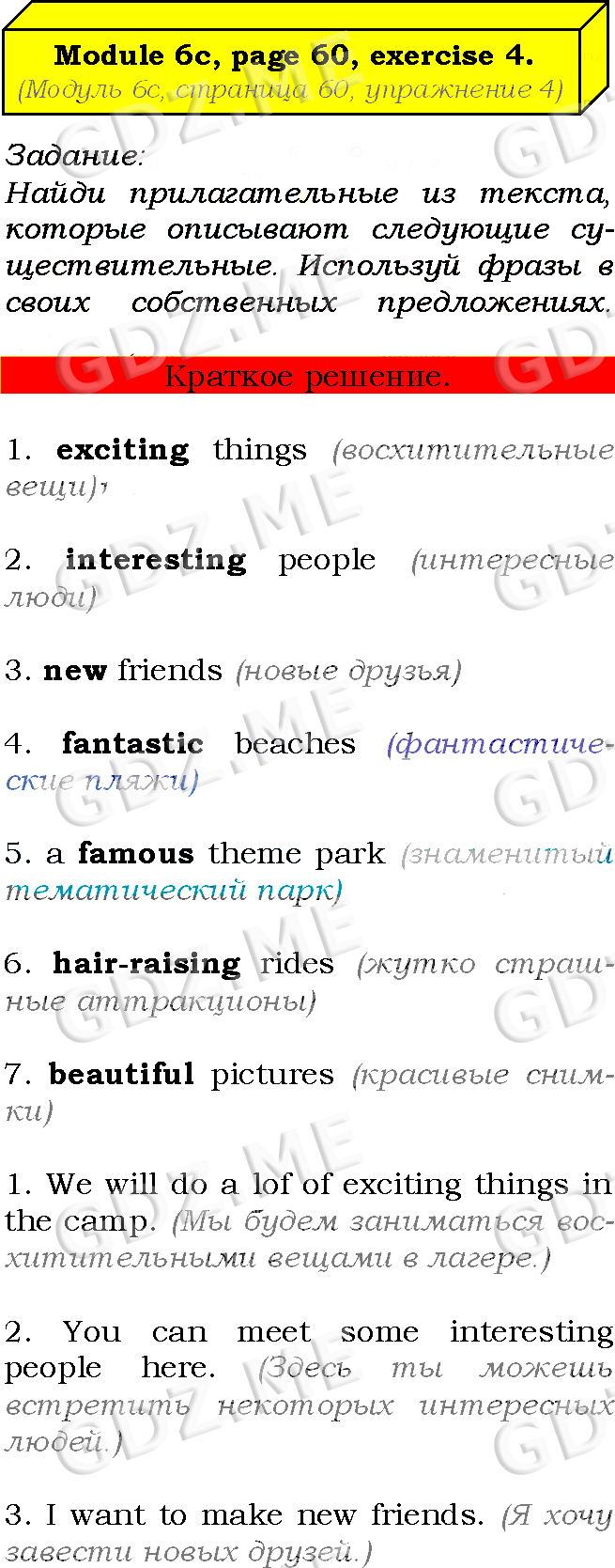 Подробный вариант решения из решебника (ГДЗ): Страница номер 60-6c-4 (Module 5. What the future holds. Module 6. Having fun. Страница 60) по предмету Английский язык, за 7 класс, авторы учебника Ю.Е. Ваулина, Д. Дули, О.Е. Подолянко, В. Эванс.