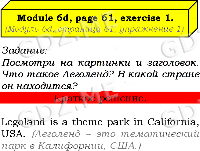 Подробный вариант решения из решебника (ГДЗ): Страница номер 61-6d-1 (Module 5. What the future holds. Module 6. Having fun. Страница 61) по предмету Английский язык, за 7 класс, авторы учебника Ю.Е. Ваулина, Д. Дули, О.Е. Подолянко, В. Эванс.