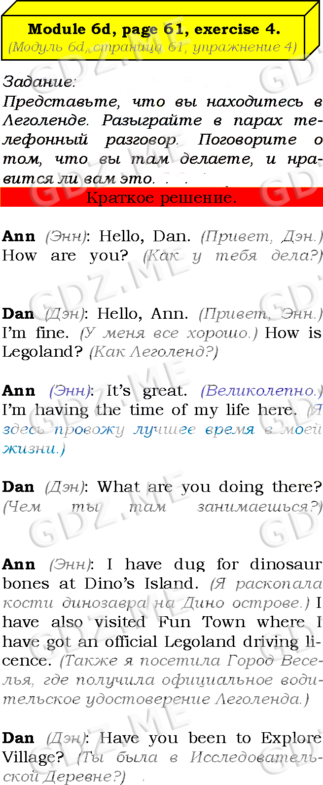 Подробный вариант решения из решебника (ГДЗ): Страница номер 61-6d-4 (Module 5. What the future holds. Module 6. Having fun. Страница 61) по предмету Английский язык, за 7 класс, авторы учебника Ю.Е. Ваулина, Д. Дули, О.Е. Подолянко, В. Эванс.