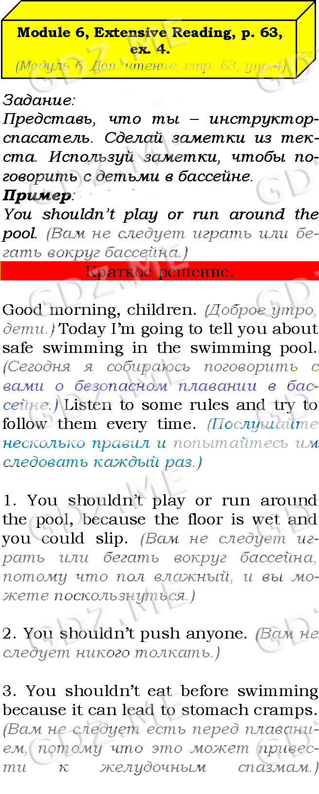 Подробный вариант решения из решебника (ГДЗ): Страница номер 63-6-4 (Module 5. What the future holds. Module 6. Having fun. Страница 63) по предмету Английский язык, за 7 класс, авторы учебника Ю.Е. Ваулина, Д. Дули, О.Е. Подолянко, В. Эванс.