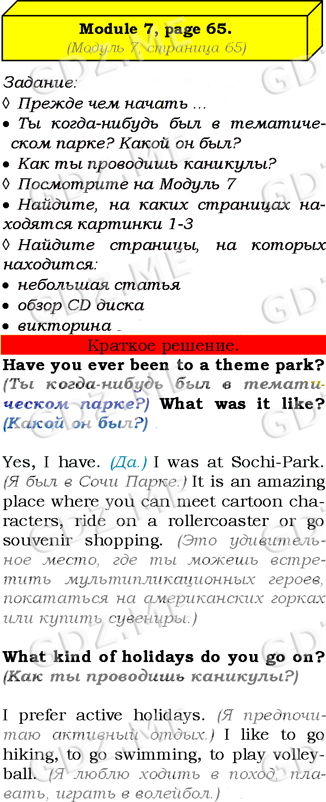 Подробный вариант решения из решебника (ГДЗ): Страница номер 65-7 (Module 6. Having fun. Module 7. In the spotlight. Страница 65) по предмету Английский язык, за 7 класс, авторы учебника Ю.Е. Ваулина, Д. Дули, О.Е. Подолянко, В. Эванс.