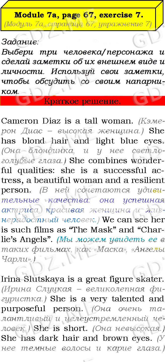 Подробный вариант решения из решебника (ГДЗ): Страница номер 67-7a-7 (Module 6. Having fun. Module 7. In the spotlight. Страница 67) по предмету Английский язык, за 7 класс, авторы учебника Ю.Е. Ваулина, Д. Дули, О.Е. Подолянко, В. Эванс.