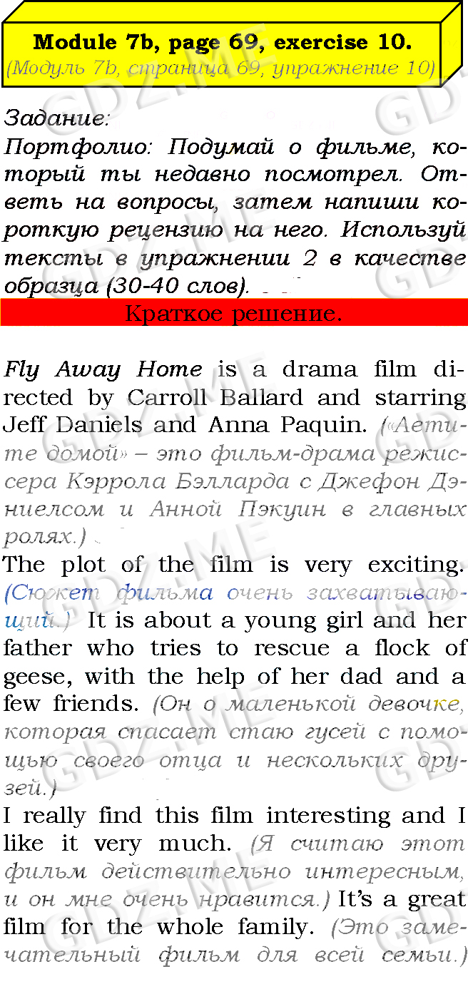 Подробный вариант решения из решебника (ГДЗ): Страница номер 69-7b-10 (Module 6. Having fun. Module 7. In the spotlight. Страница 69) по предмету Английский язык, за 7 класс, авторы учебника Ю.Е. Ваулина, Д. Дули, О.Е. Подолянко, В. Эванс.