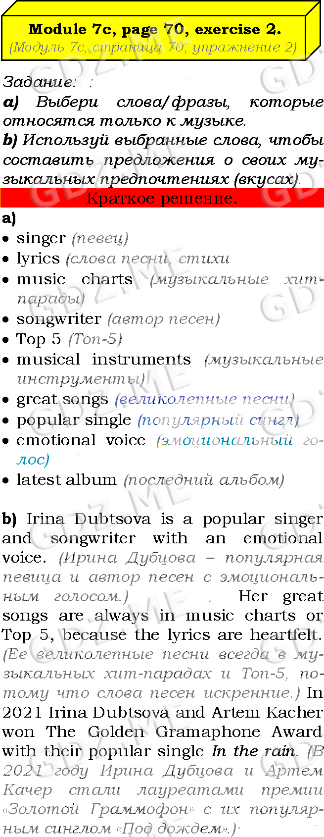 Подробный вариант решения из решебника (ГДЗ): Страница номер 70-7c-2 (Module 6. Having fun. Module 7. In the spotlight. Страница 70) по предмету Английский язык, за 7 класс, авторы учебника Ю.Е. Ваулина, Д. Дули, О.Е. Подолянко, В. Эванс.