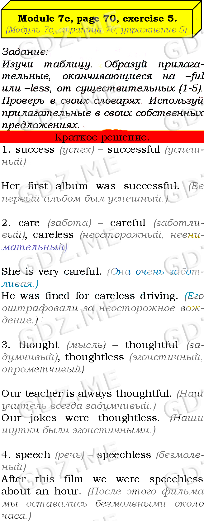 Подробный вариант решения из решебника (ГДЗ): Страница номер 70-7c-5 (Module 6. Having fun. Module 7. In the spotlight. Страница 70) по предмету Английский язык, за 7 класс, авторы учебника Ю.Е. Ваулина, Д. Дули, О.Е. Подолянко, В. Эванс.