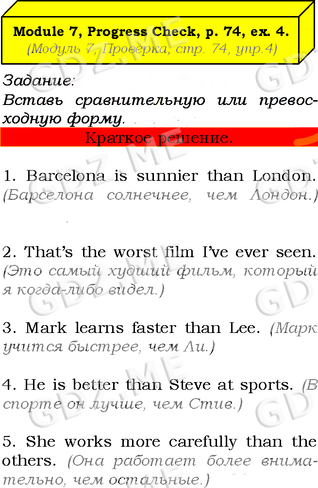 Подробный вариант решения из решебника (ГДЗ): Страница номер 74-7-4 (Module 6. Having fun. Module 7. In the spotlight. Страница 74) по предмету Английский язык, за 7 класс, авторы учебника Ю.Е. Ваулина, Д. Дули, О.Е. Подолянко, В. Эванс.