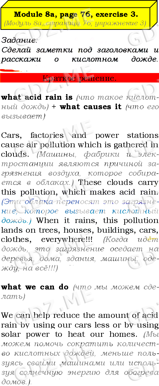 Подробный вариант решения из решебника (ГДЗ): Страница номер 76-8a-3 (Module 7. In the spotlight. Module 8. Green issues. Страница 76) по предмету Английский язык, за 7 класс, авторы учебника Ю.Е. Ваулина, Д. Дули, О.Е. Подолянко, В. Эванс.