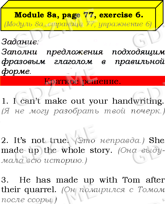 Подробный вариант решения из решебника (ГДЗ): Страница номер 77-8a-6 (Module 7. In the spotlight. Module 8. Green issues. Страница 77) по предмету Английский язык, за 7 класс, авторы учебника Ю.Е. Ваулина, Д. Дули, О.Е. Подолянко, В. Эванс.
