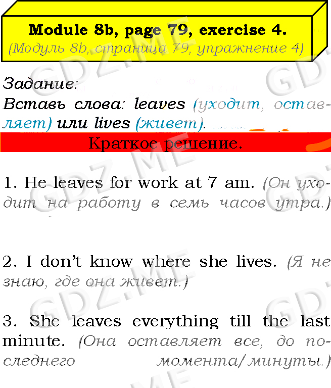 Подробный вариант решения из решебника (ГДЗ): Страница номер 79-8b-4 (Module 7. In the spotlight. Module 8. Green issues. Страница 79) по предмету Английский язык, за 7 класс, авторы учебника Ю.Е. Ваулина, Д. Дули, О.Е. Подолянко, В. Эванс.
