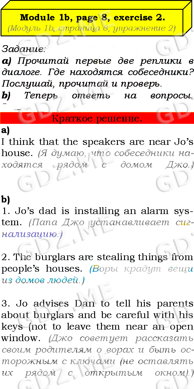 Подробный вариант решения из решебника (ГДЗ): Страница номер 8-1b-2 (Module 1. Lifestyles. Страница 8) по предмету Английский язык, за 7 класс, авторы учебника Ю.Е. Ваулина, Д. Дули, О.Е. Подолянко, В. Эванс.