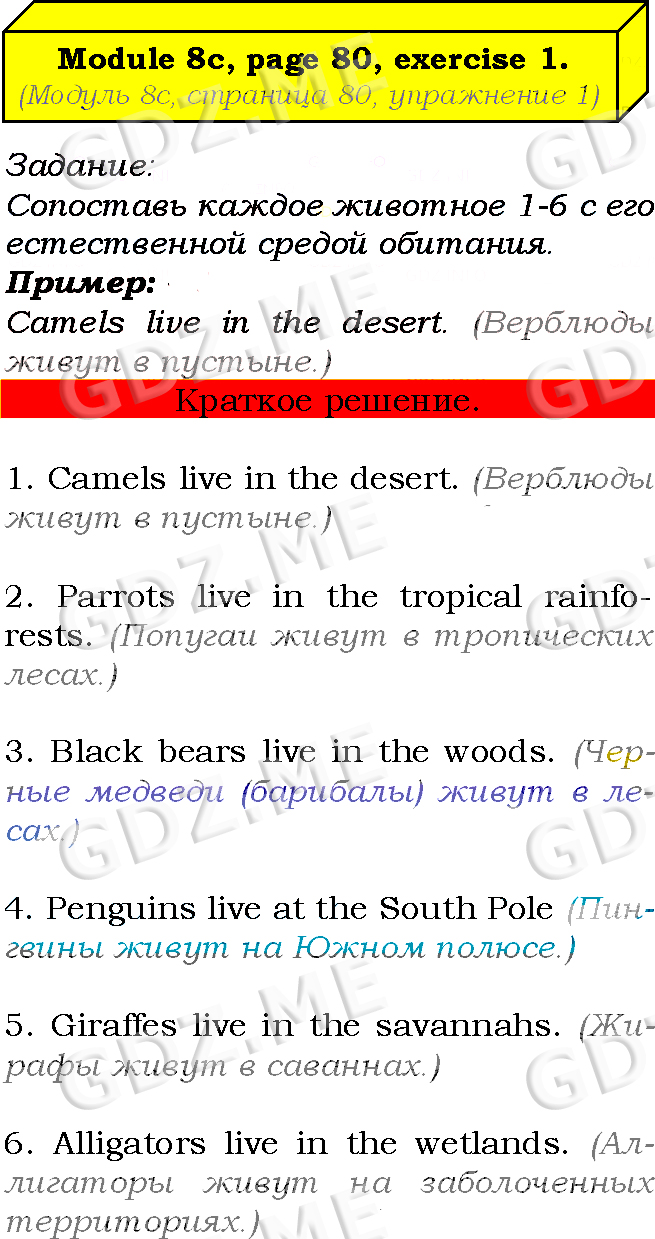Подробный вариант решения из решебника (ГДЗ): Страница номер 80-8c-1 (Module 7. In the spotlight. Module 8. Green issues. Страница 80) по предмету Английский язык, за 7 класс, авторы учебника Ю.Е. Ваулина, Д. Дули, О.Е. Подолянко, В. Эванс.
