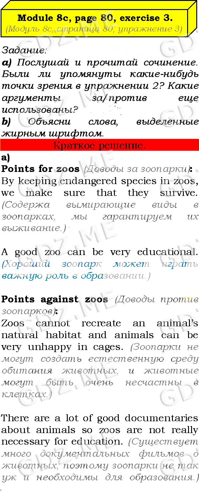 Подробный вариант решения из решебника (ГДЗ): Страница номер 80-8c-3 (Module 7. In the spotlight. Module 8. Green issues. Страница 80) по предмету Английский язык, за 7 класс, авторы учебника Ю.Е. Ваулина, Д. Дули, О.Е. Подолянко, В. Эванс.