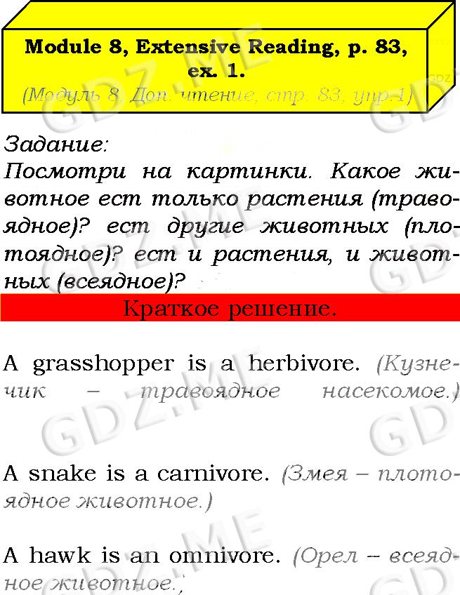 Подробный вариант решения из решебника (ГДЗ): Страница номер 83-8-1 (Module 7. In the spotlight. Module 8. Green issues. Страница 83) по предмету Английский язык, за 7 класс, авторы учебника Ю.Е. Ваулина, Д. Дули, О.Е. Подолянко, В. Эванс.