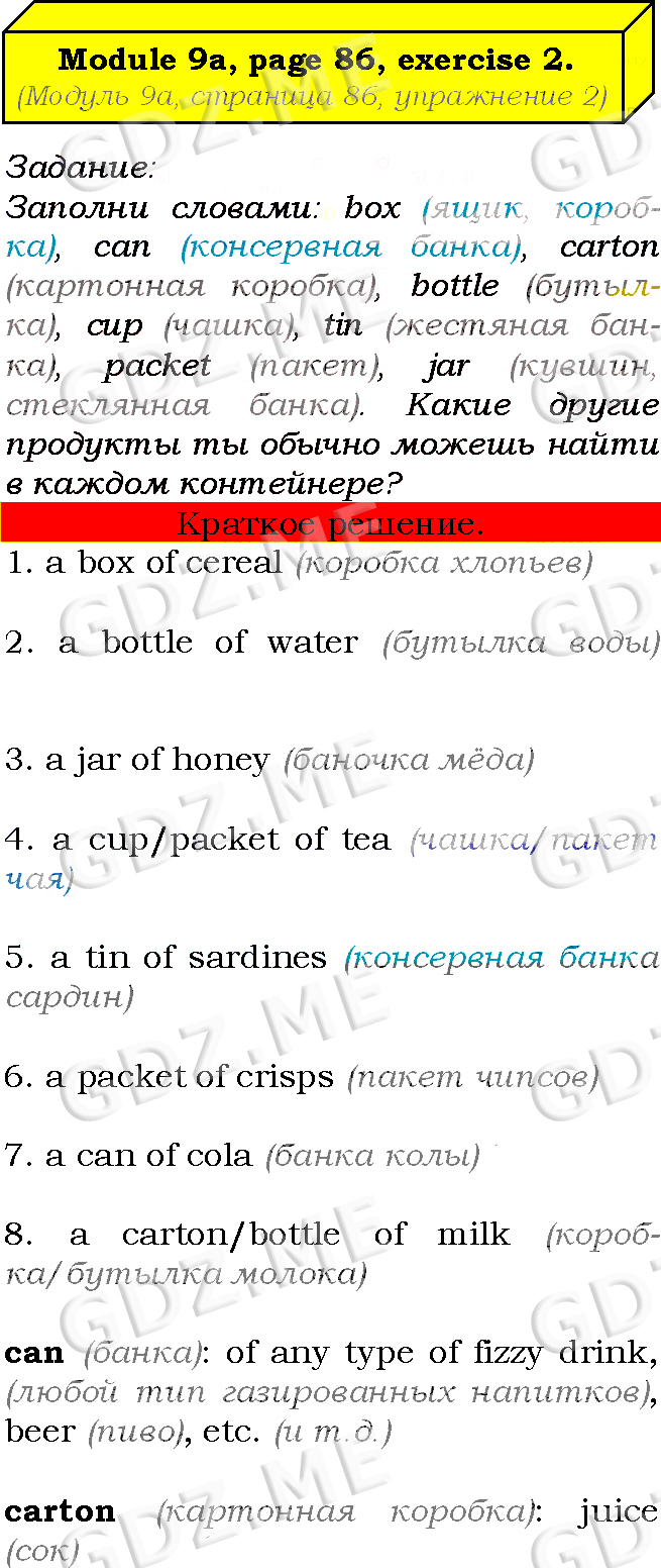 Подробный вариант решения из решебника (ГДЗ): Страница номер 86-9a-2 (Module 8. Green issues. Module 9. Shopping time. Страница 86) по предмету Английский язык, за 7 класс, авторы учебника Ю.Е. Ваулина, Д. Дули, О.Е. Подолянко, В. Эванс.