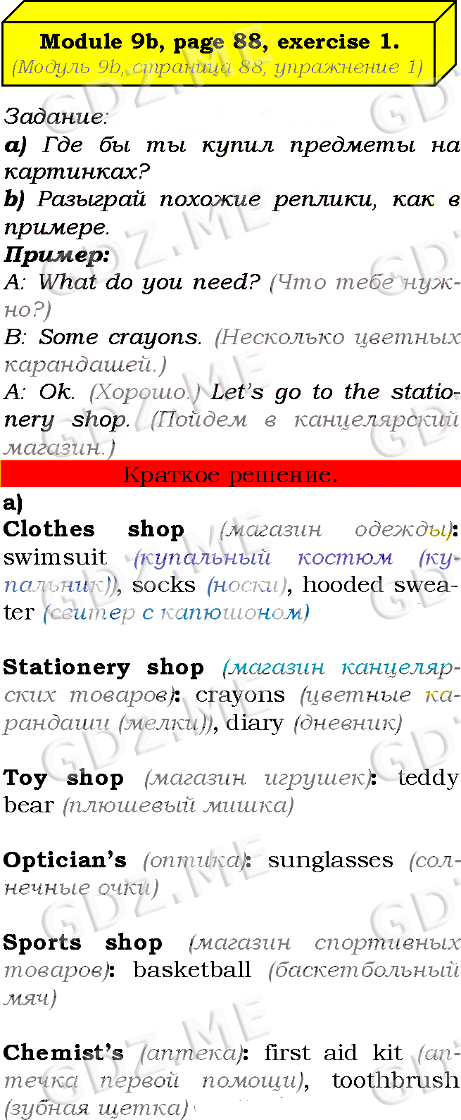 Подробный вариант решения из решебника (ГДЗ): Страница номер 88-9b-1 (Module 8. Green issues. Module 9. Shopping time. Страница 88) по предмету Английский язык, за 7 класс, авторы учебника Ю.Е. Ваулина, Д. Дули, О.Е. Подолянко, В. Эванс.