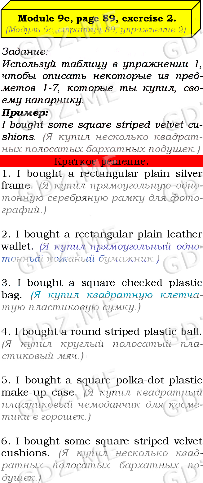 Подробный вариант решения из решебника (ГДЗ): Страница номер 89-9c-2 (Module 8. Green issues. Module 9. Shopping time. Страница 89) по предмету Английский язык, за 7 класс, авторы учебника Ю.Е. Ваулина, Д. Дули, О.Е. Подолянко, В. Эванс.