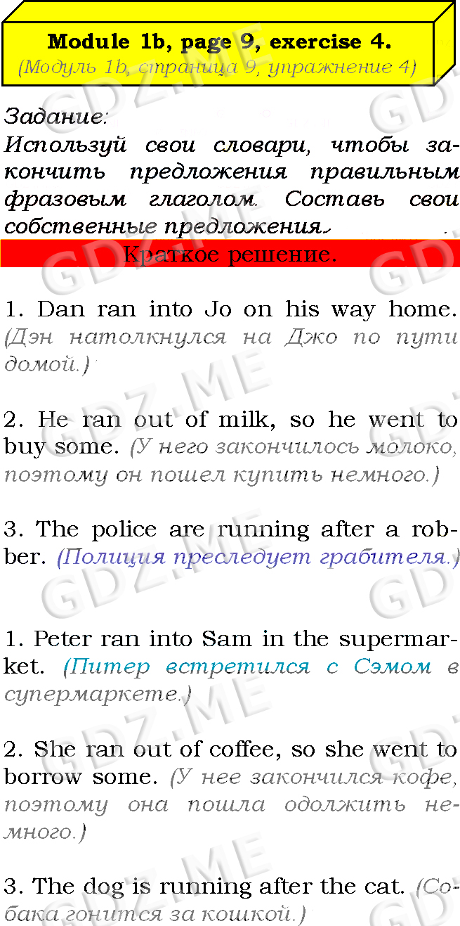 Подробный вариант решения из решебника (ГДЗ): Страница номер 9-1b-4 (Module 1. Lifestyles. Страница 9) по предмету Английский язык, за 7 класс, авторы учебника Ю.Е. Ваулина, Д. Дули, О.Е. Подолянко, В. Эванс.