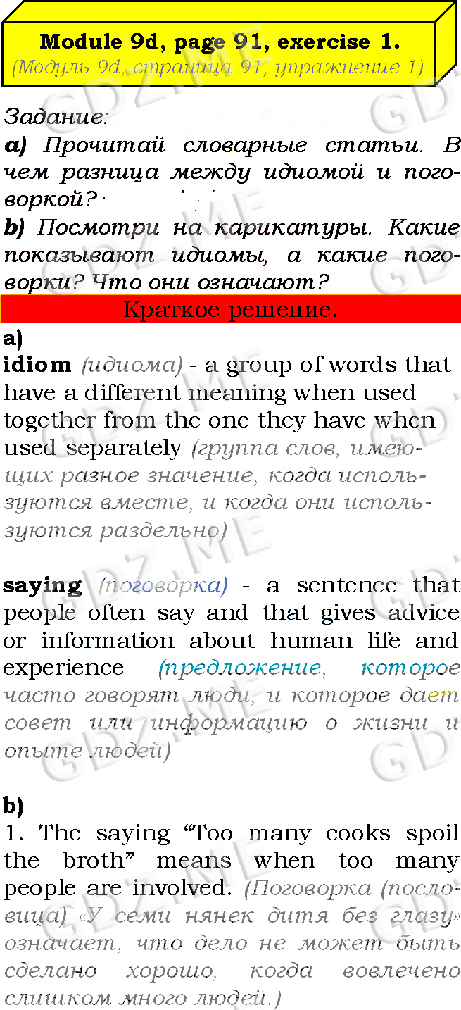 Подробный вариант решения из решебника (ГДЗ): Страница номер 91-9d-1 (Module 8. Green issues. Module 9. Shopping time. Страница 91) по предмету Английский язык, за 7 класс, авторы учебника Ю.Е. Ваулина, Д. Дули, О.Е. Подолянко, В. Эванс.