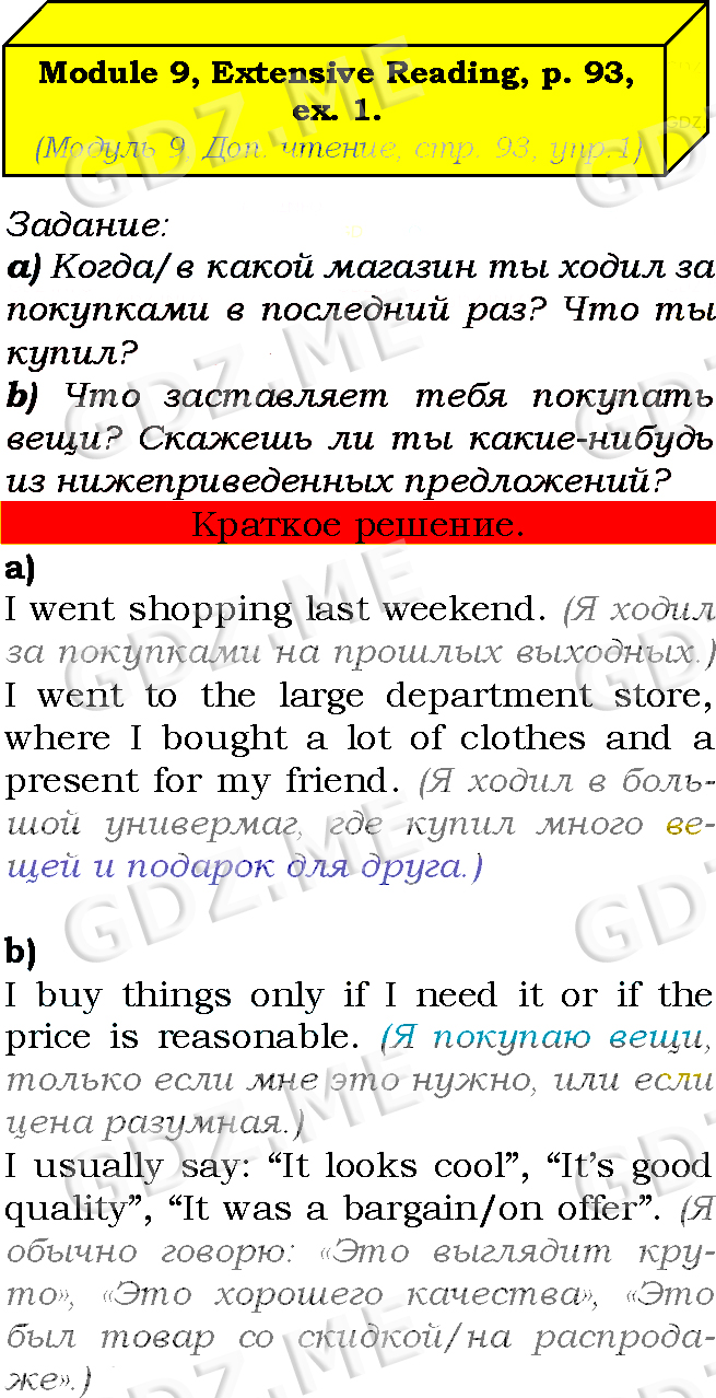 Подробный вариант решения из решебника (ГДЗ): Страница номер 93-9-1 (Module 8. Green issues. Module 9. Shopping time. Страница 93) по предмету Английский язык, за 7 класс, авторы учебника Ю.Е. Ваулина, Д. Дули, О.Е. Подолянко, В. Эванс.