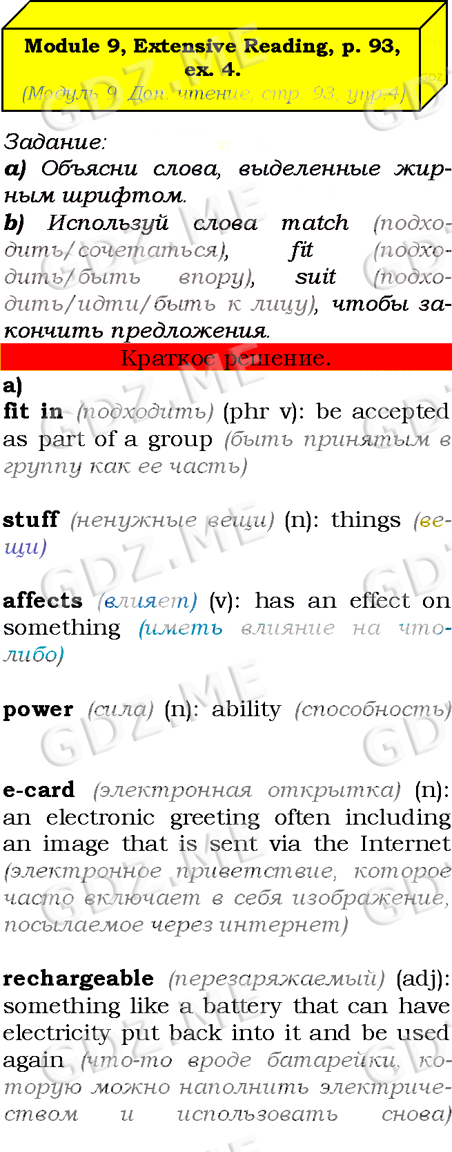 Подробный вариант решения из решебника (ГДЗ): Страница номер 93-9-4 (Module 8. Green issues. Module 9. Shopping time. Страница 93) по предмету Английский язык, за 7 класс, авторы учебника Ю.Е. Ваулина, Д. Дули, О.Е. Подолянко, В. Эванс.